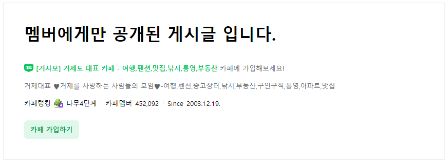 거사모(거제를 사랑하는 사람들의 모임)는 2003년에 시작된 거제도 최대 규모의 온라인 커뮤니티로, 43만 명 이상의 회원을 보유하고 있습니다. 이 카페는 거제도 관련 정보, 부동산 매물, 맛집 추천, 여행지 소개, 중고거래, 구인구직 정보 등을 제공합니다. 특히 구인구직 게시판은 많은 사람들이 관심을 가지는 주요 카테고리 중 하나로, 매일 수십 개의 일자리 정보가 업데이트됩니다.
